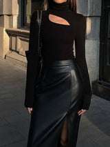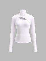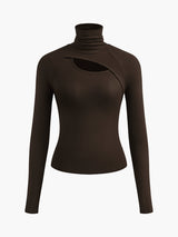 Asymmetric Cut Out Turtleneck Long Sleeve Slinky Top