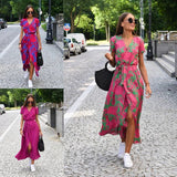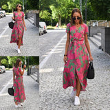 This women’s floral summer maxi dress is designed to combine comfort, style, and versatility, making it a suitable choice for warm-weather occasions. Featuring a deep V-neckline, adjustable waist, and flowing silhouette, it provides a flattering fit while allowing ease of movement. The vibrant floral pattern adds a summery touch, making it perfect for both casual outings and festive gatherings.