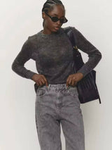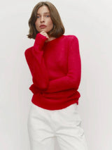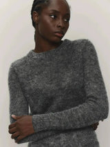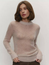 Pull it on and the soft mohair feels light on your skin. The round neck sits nice at your collarbone and slips under jackets or over shirts without bunching. The sleeves move with you and stay comfy all day, from morning coffee to evening plans.