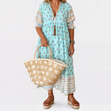 But wait, there's more! The light, airy fabric keeps you cool even on hot days. The pretty floral pattern works for both casual hangouts and fancy get togethers. Plus, the roomy fit lets you move around and stay comfy all day.