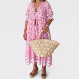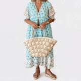 • 1 x Womens Midi Summer Floral Dress V Neck