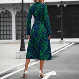 This women’s dress features a midi-length cut with an A-line silhouette, designed for seasonal use in spring, summer, or autumn. It includes a button-down front and a waist tie to provide structure and adjustability. The breathable construction supports all-day wear in casual and daytime settings.