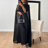 The soft, breathable chiffon flows from shoulder to floor length, with shawl-inspired sleeves adding extra dimension. Its solid color and modest design make it perfect for evening gatherings or special celebrations.