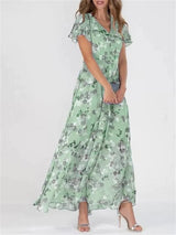 Elegant V Neck Ruffle Sleeve Floral High Waist Dress — Effortless Style Made Simple
