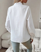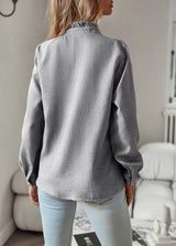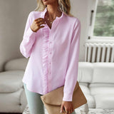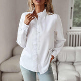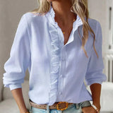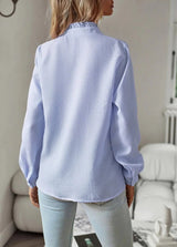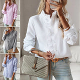 This women's blouse features a striped surface and long sleeves. Designed with a medium-length cut and regular fit, it is suitable for spring and summer use in casual or outdoor settings.