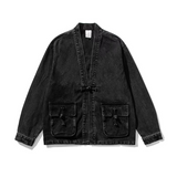 Men’s Vintage Denim Kimono Jacket, Casual Chinese Style Button Jean Coat