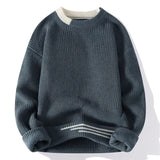 Men's Autumn Winter Patchwork Knit Sweater, Slim Fit O-Neck Pullover