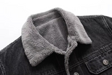Men's Black Fleece-Lined Denim Winter Jacket, Warm Comfort for Cold Days