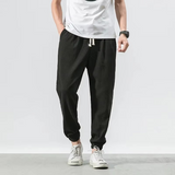 Men's Cotton Linen Casual Pants, Relaxed Fit Harem Trousers with Cuffed Ankle