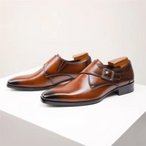 Men's Genuine Cow Leather Buckle Pointed Dress Shoes