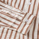 Men's Loose Fit Long Sleeve Striped Work Shirt Coat for Hairstylists