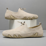 The suede outer layer keeps water out while looking sharp enough for the office. The bouncy rubber bottom grips the floor without leaving marks. Inside, the soft leather lining pulls sweat away and molds to your feet's shape.