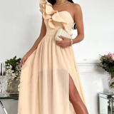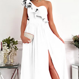 Ruffle Edge One Shoulder Maxi Dress with Side Slit, Effortless Elegance for Every Occasion
