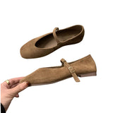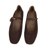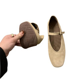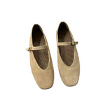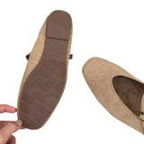 TAUPE SUEDE MARY JANE FLATS SPECS