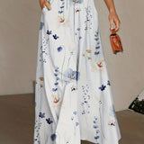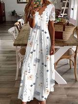 Women’s Floral Print V-Neck Maxi Dress with Short Sleeves