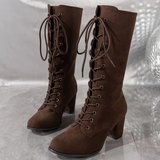 Women’s High Lace-Up Winter Boots with Round Toe and Sturdy Heel