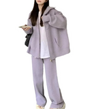 Women’s Knit Two Piece Pant Set with Zipper Sweater Coat and Wide Leg Pants