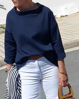 This top’s streamlined design enhances your look without compromising comfort. The soft, breathable structure ensures all-day wearability, while the long sleeves provide a graceful touch. Perfect for pairing with jeans, trousers, or skirts, it adds a polished feel to both relaxed and dressy outfits.