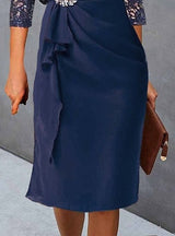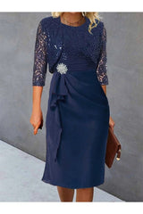 Women’s Two-Piece Midi Dress with Round Neck and ¾ Sleeves