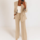 The soft polyester fabric bends and moves with you instead of fighting against your body. The blazer has one button that keeps things simple while the high waisted pants make your legs look longer. Everything fits just right so you look put together without feeling squeezed.
