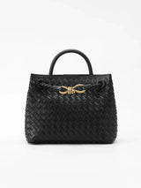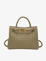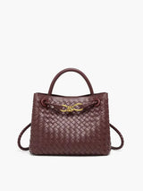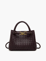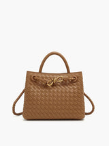 This woven handbag is designed with a clean and structured appearance. Its shape provides a practical way to carry essentials while maintaining a neat and modern look.