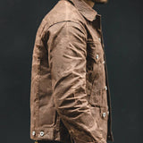 Men's Vintage Brown Waxed Cotton Jacket With Front Flap Pockets