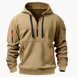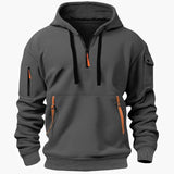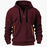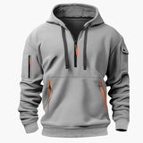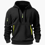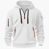 Engineered for convenience, this hoodie includes a half-zip closure for quick ventilation and easy wear. The adjustable hood offers a personalized fit, and multiple zippered pockets including a utility pocket on the arm—keep essentials secure and accessible. Ribbed cuffs and a reinforced hem maintain the hoodie’s shape over time, providing durability without compromising comfort.