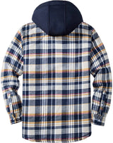 Made from polyester and cotton with thick fleece lining that feels soft inside. The plaid pattern looks good with jeans, boots, or sneakers. Four pockets give you room for your phone, keys, wallet, and other stuff you need.