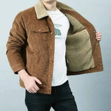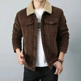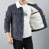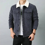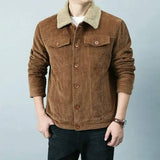 Made from thick corduroy that breathes, blocks wind, and feels good on skin with fuzzy sherpa lining inside for warmth. Two chest pockets with buttons and two side pockets fit your phone, keys, and wallet. The solid color goes with tees, hoodies, and jeans.