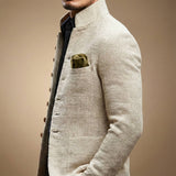 Men's Solid Tweed Stand Collar Single Breasted Casual Jacket
