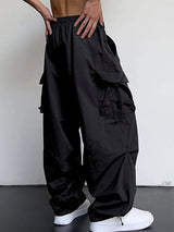 Four big pockets hold your phone, keys, and wallet without sticking out weird. The material doesn't wrinkle or lose color even after you wash them a bunch. The cuffs have toggles so you can tighten or loosen the bottom to match your shoes.