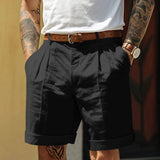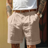Mens Classic White Pleated Shorts With Cuffed Hem