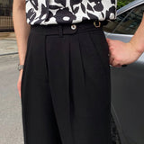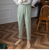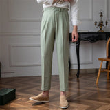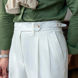 Front pleats introduce timeless tailoring, adding shape and ease of movement. With integrated side adjusters, the waist can be refined for a personalized fit, enhancing comfort throughout the day. The overall cut balances structure with flexibility, making these trousers a reliable choice for both professional and casual settings.