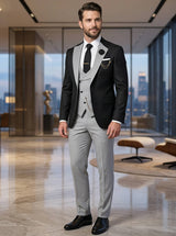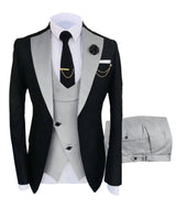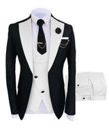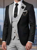 Men's 3 Piece Tuxedo Suit Set, Single Breasted Blazer, Vest & Pants for Weddings and Formal Events