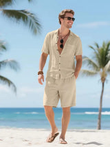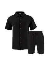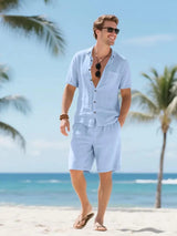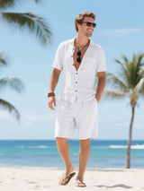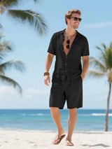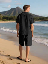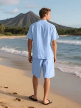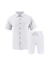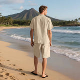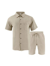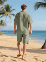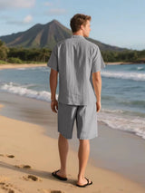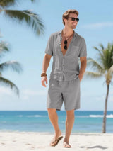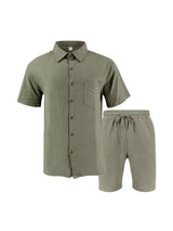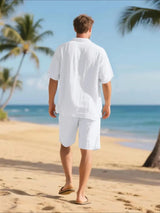 Men's Linen Short Sleeve Button Down Shirt and Short Set, Summer