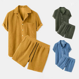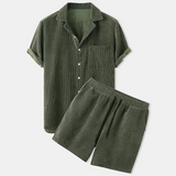Men's Summer Corduroy 2-Piece Set – Short Sleeve Lapel Shirt with Matching Shorts