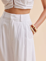 Cotton Mid-Waist Wide-Leg Pants With Pockets