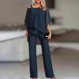 Two-Piece Women’s Flowy Top and Straight-Leg Pants Set