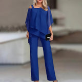 The included pants are shaped with a straight leg that maintains a consistent line from the hip to the hem. This allows the set to create a unified appearance when worn together. The full-length design supports a polished look without restricting movement during routine activities. The style works well with both flat shoes and heels, depending on the occasion.