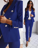 The set includes a matching blazer and trousers, allowing for a cohesive and well-balanced outfit. This coordinated design simplifies styling while maintaining a refined appearance. Both pieces can be worn together for a complete look or styled separately for added versatility.