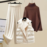 Women's 3-Piece Knitted Sweater Set with Vest, Turtleneck Pullover and Wide-Leg Pants