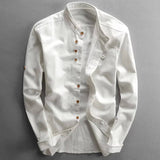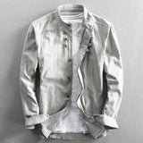 The cotton and linen mix keeps you cool when it's warm, cozy when it's cool. The unique stand up collar gives you that clean, modern look everyone's talking about. The buttons line up perfectly down the front for a neat, tidy appearance.