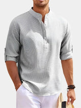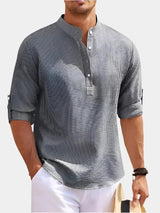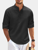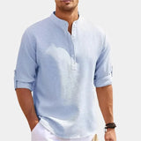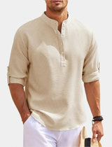 This long-sleeve T-shirt offers a straight cut and simple structure suitable for everyday use. The collar design adds visual detail, and the soft construction supports all-day wear. Ideal for layering or wearing on its own.