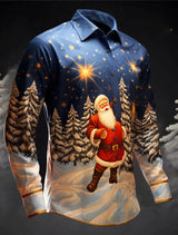 This long-sleeve holiday shirt is created for seasonal gatherings where a refined yet relaxed appearance is preferred. Its lightweight structure supports comfortable wear throughout extended events and celebrations. The printed pattern adds a festive element without overwhelming the overall design. This balance makes it suitable for both casual and semi-formal holiday settings.