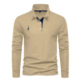 This long-sleeve polo shirt is designed to offer a relaxed wearing experience throughout the day. The soft, breathable structure supports ease of movement during work, errands, or casual outings. Its balanced fit allows it to sit comfortably on the body without restricting natural motion. This makes it suitable for cooler seasons and general daily wear.