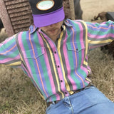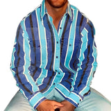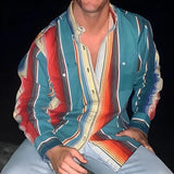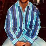 Men’s Retro Block Stripe Loose Fit Long Sleeve Shirt