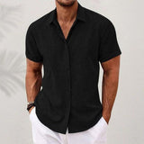 This shirt is designed for spring and summer, offering a balanced combination of comfort and a clean appearance. Its relaxed structure supports easy movement during daily activities. The straight cut provides a composed silhouette suitable for warm weather. This layout makes it appropriate for both indoor and outdoor settings.