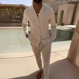 The set is available in several color options including white, sky blue, khaki, black, and green. The range of sizes provides choices for different body types. Each piece is structured to maintain a consistent silhouette while supporting ease of movement. This format makes the set appropriate for various warm-weather environments.