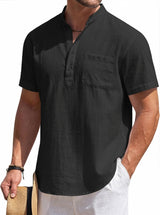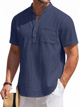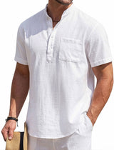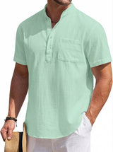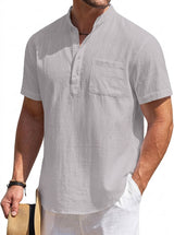 Men's Cotton Linen Henley Shirt, Short Sleeve