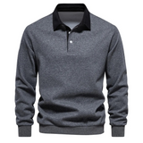 It's made from 80% cotton and 20% polyester, so it feels soft but still keeps its shape. The three buttons at the collar let you decide how casual or dressy you want to look. Those stretchy cuffs and bottom edge stay snug without getting all stretched out.